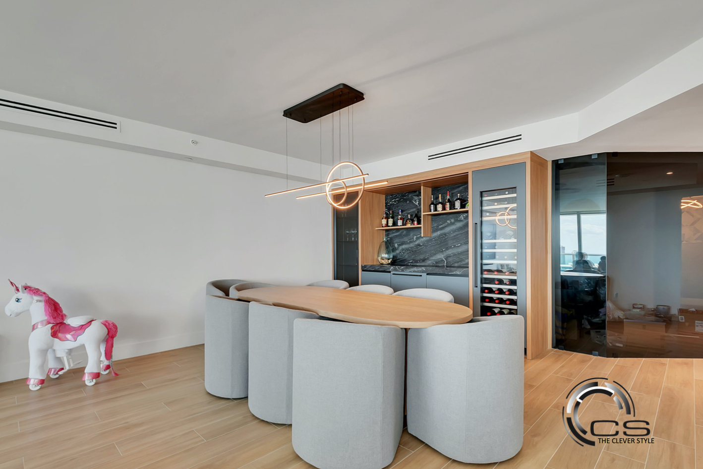 The redesign of Peninsula II was aimed at creating spaces that are thoughtfully designed yet understated. Unique accents throughout the apartment ensure an unforgettable experience. A custom-designed bar was added to the living room to enhance the atmosphere, while the children’s bedroom was designed to balance function with style. Hallway wall panelling was installed to bring together elegance and practicality, with options tailored to either a modern or timeless aesthetic.